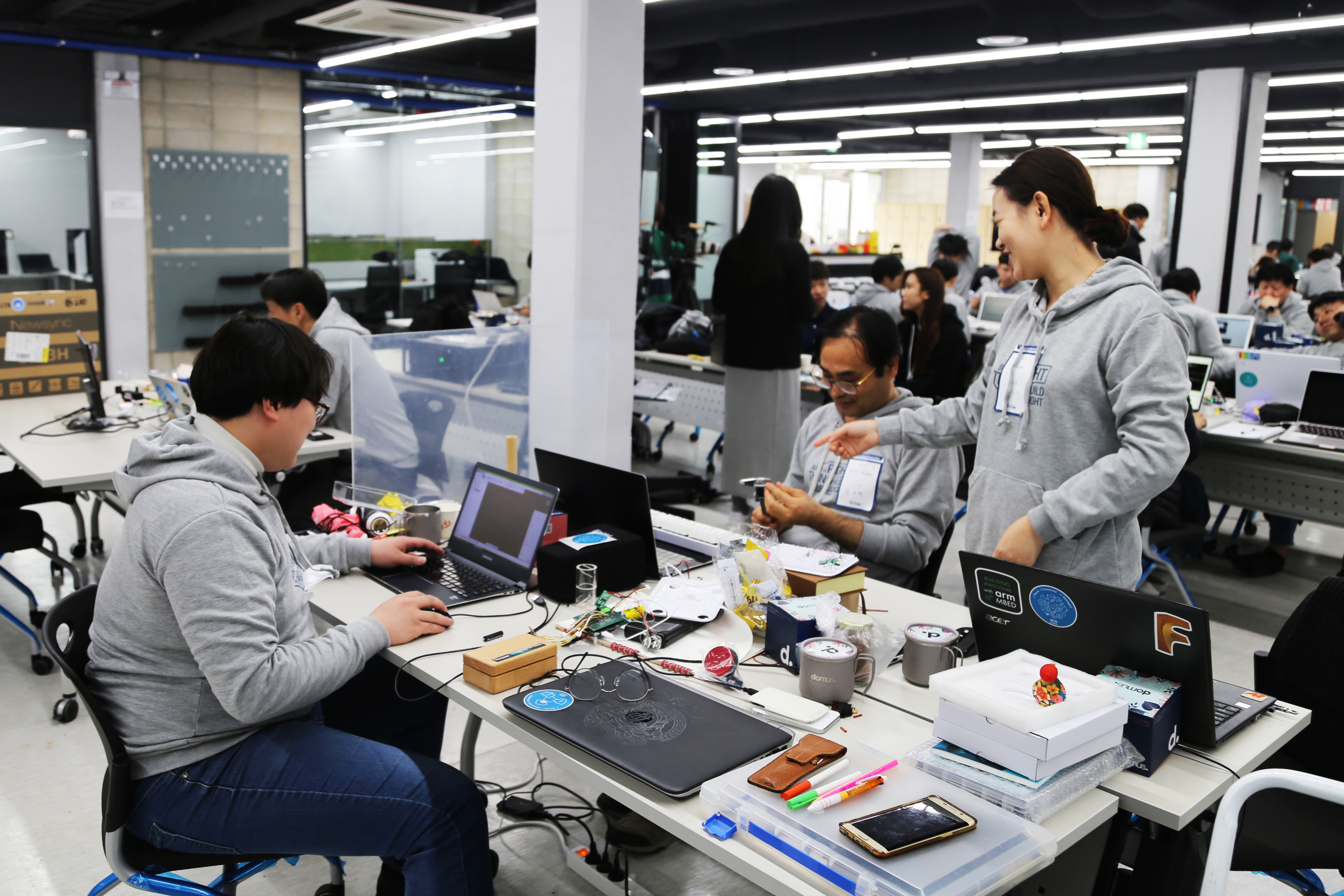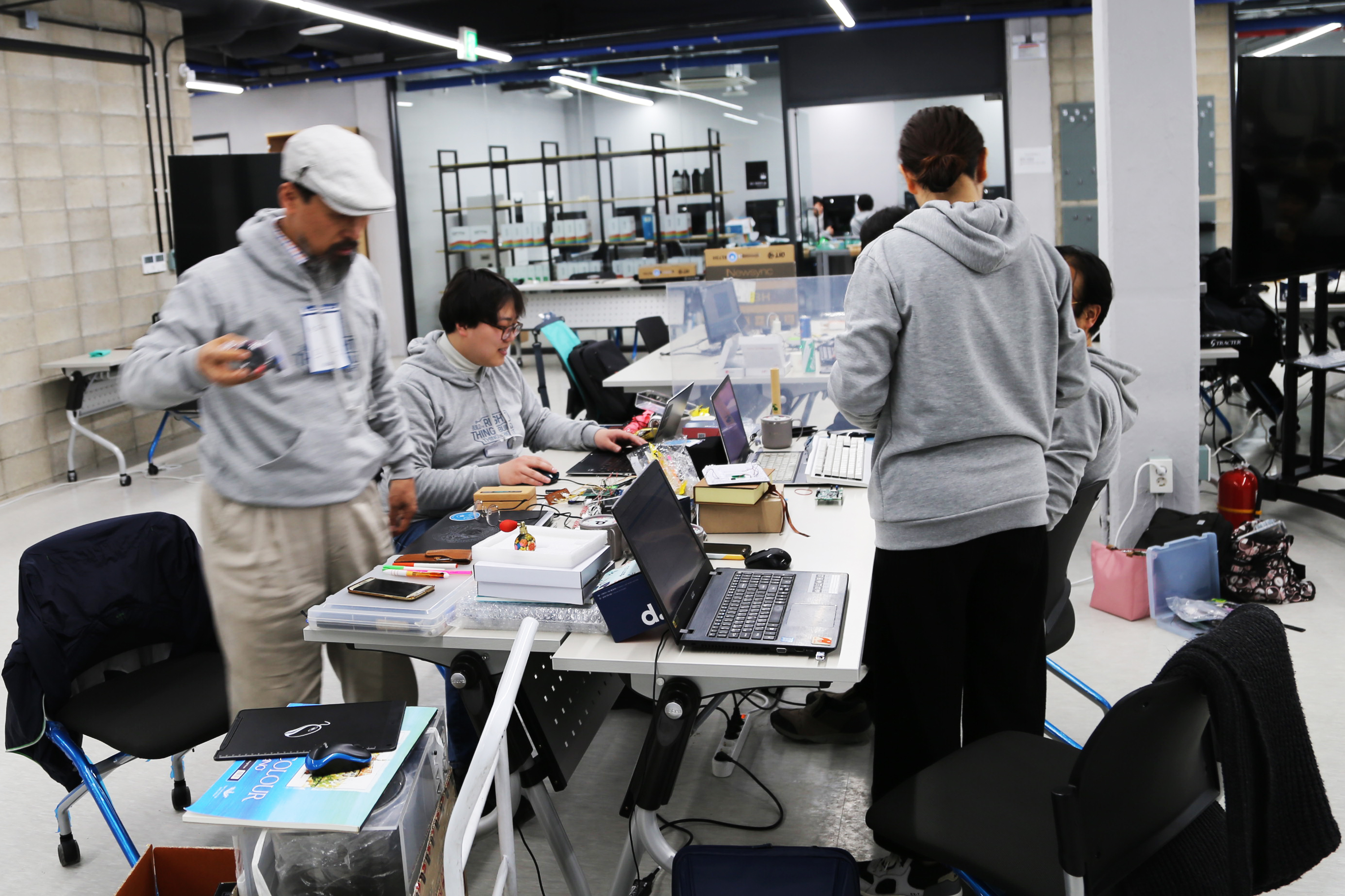 서울하드웨어 해커톤에서 개발하고 있는 장면입니다.