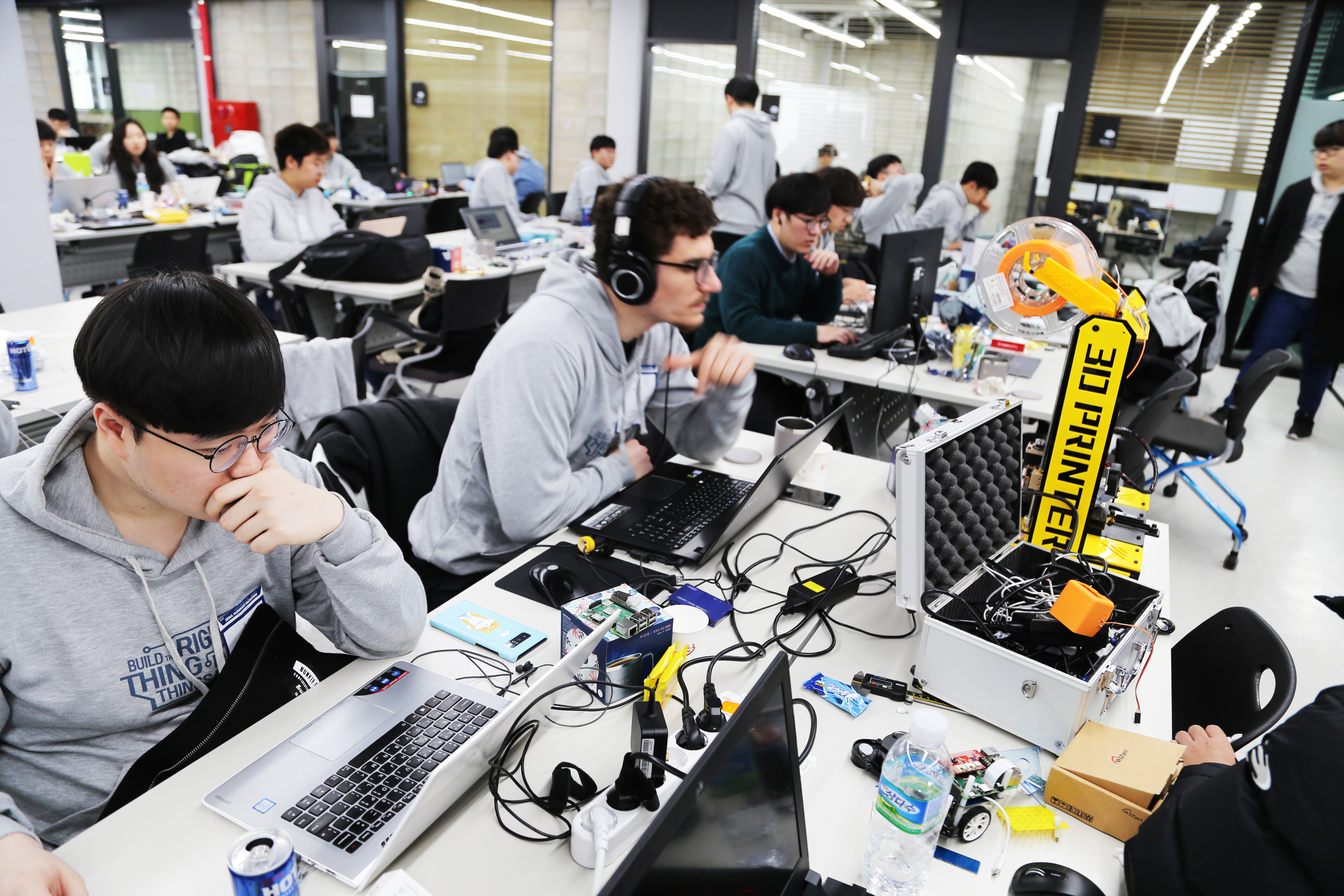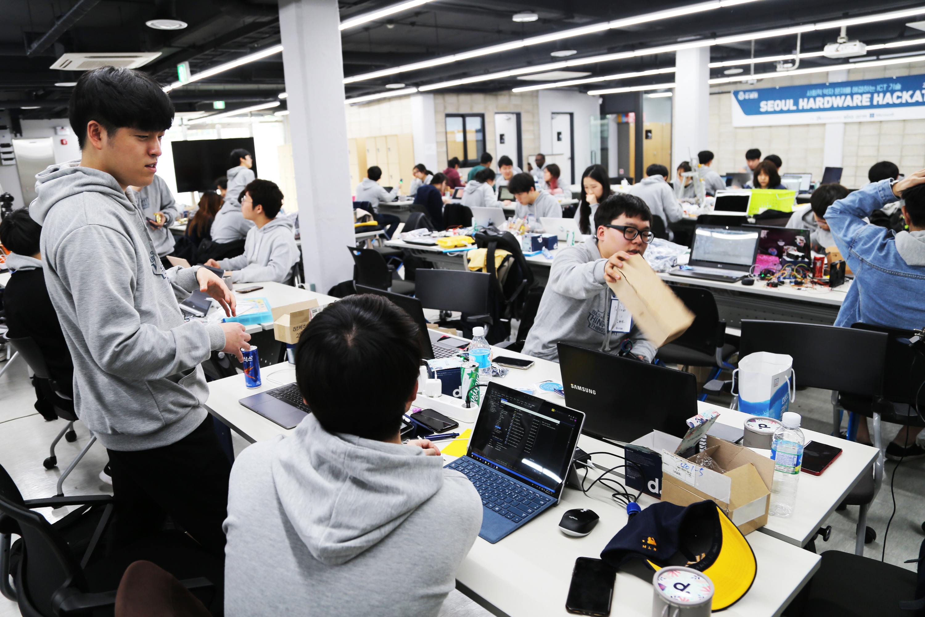 서울하드웨어 해커톤에서 개발하고 있는 장면입니다.