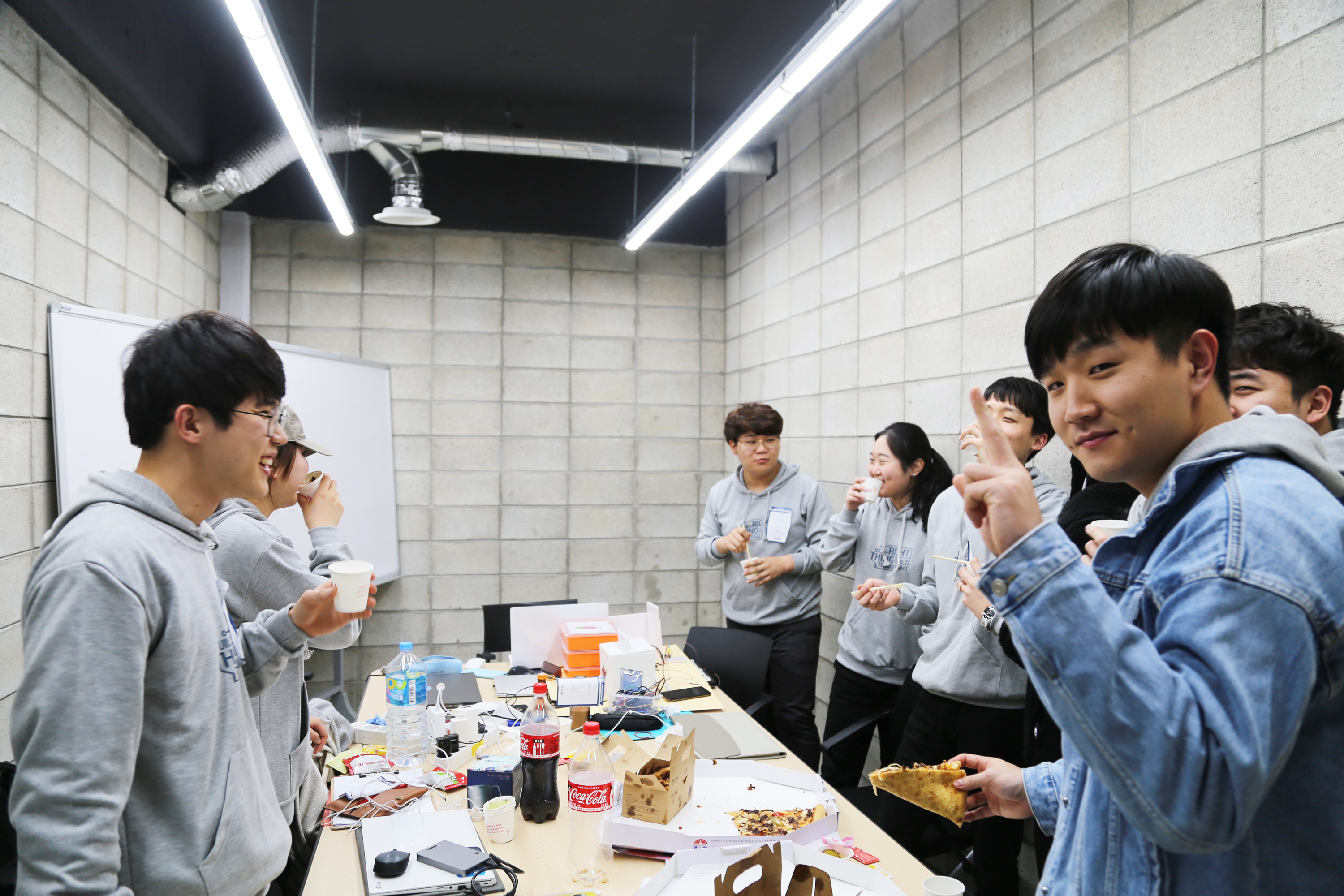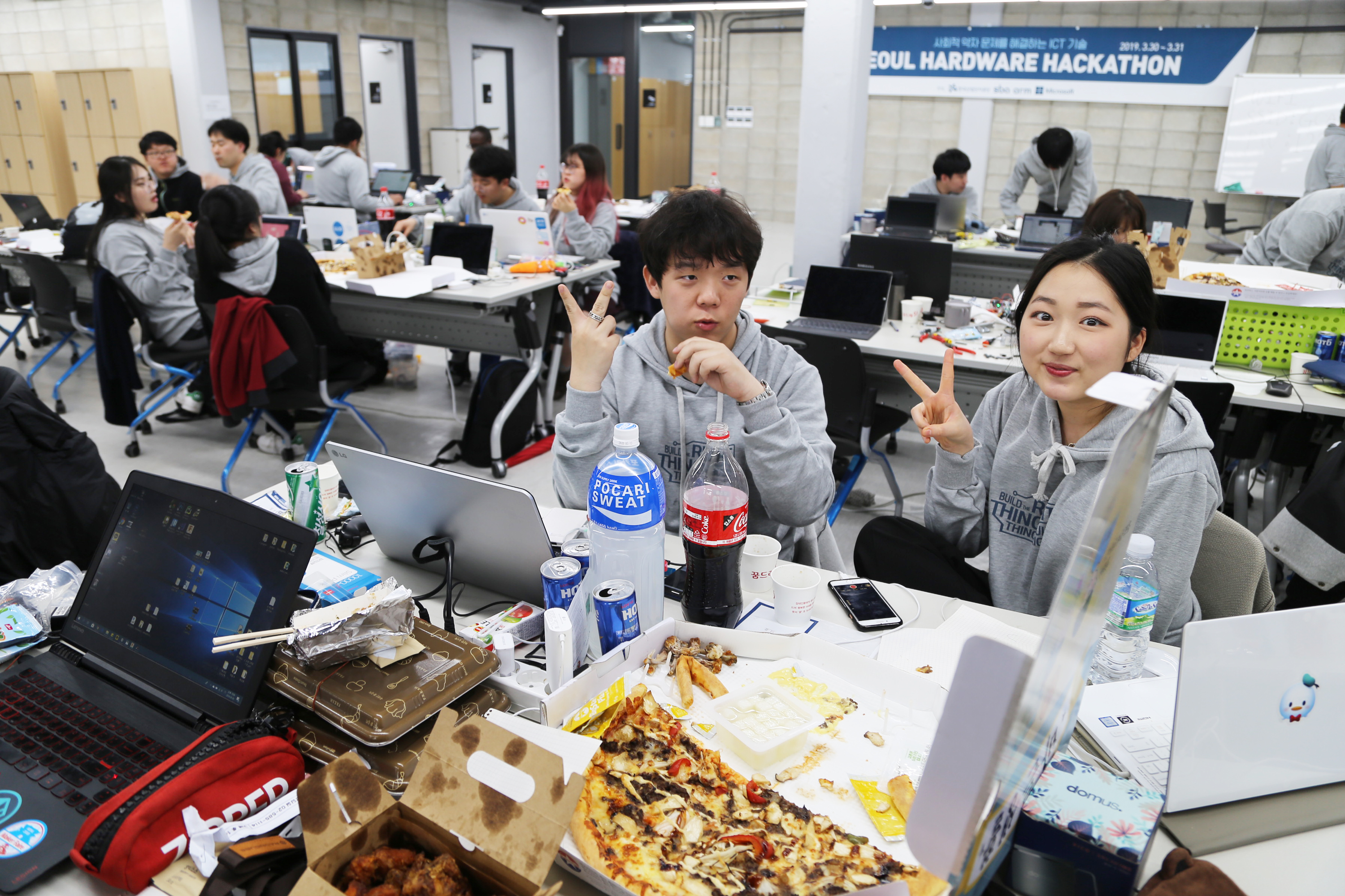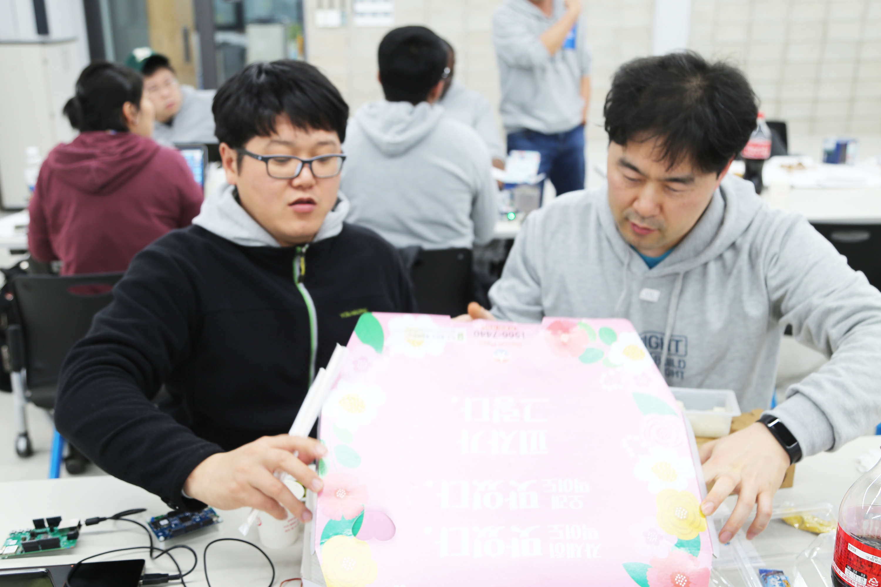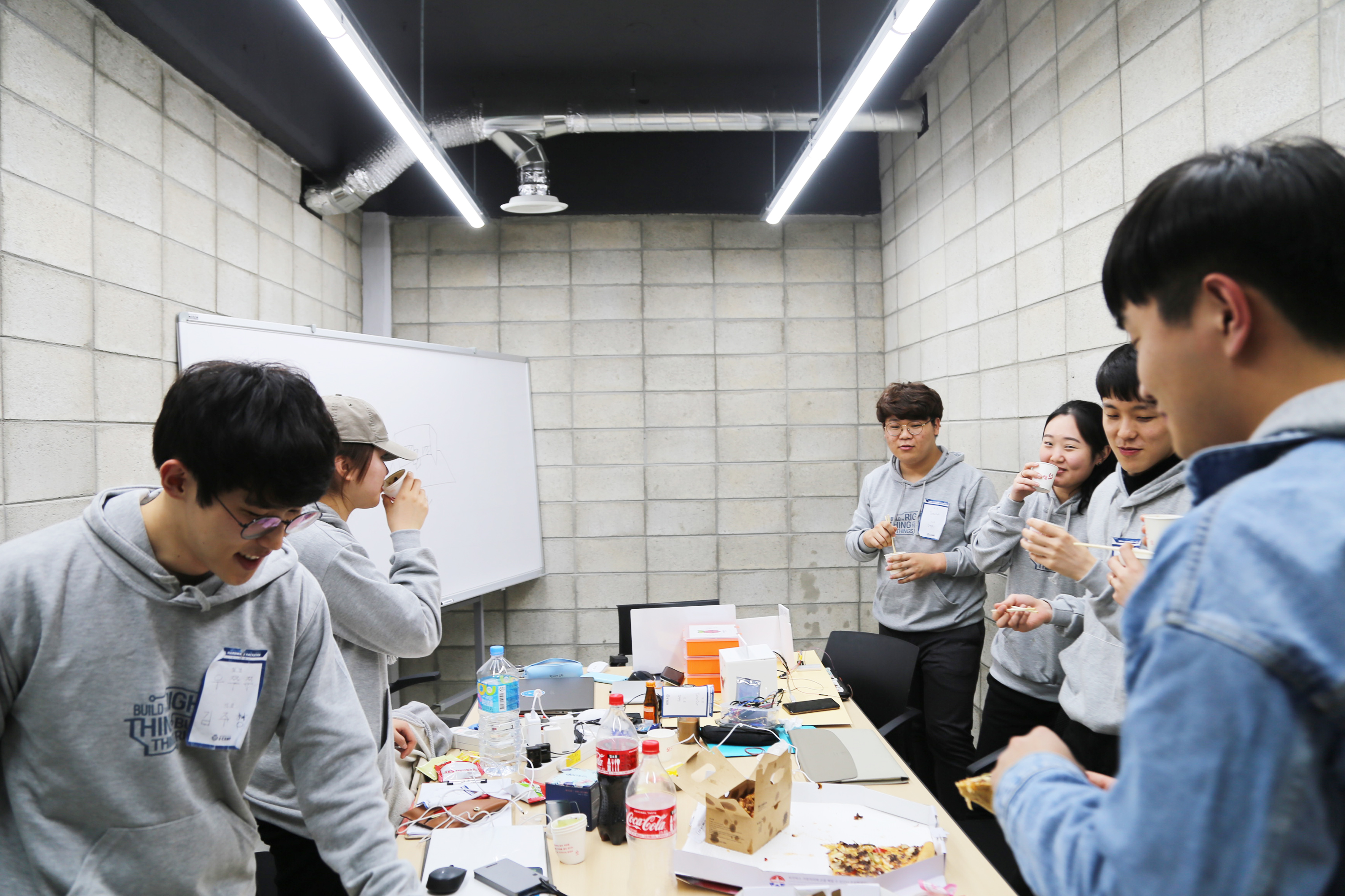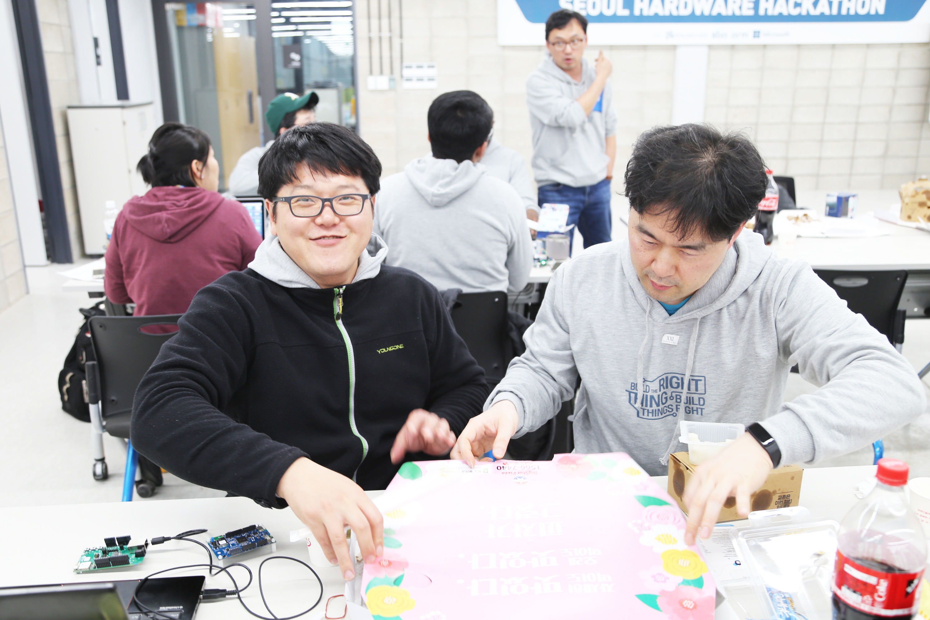 서울하드웨어 해커톤에서 개발하고 있는 장면입니다. 개발을 좋아하는 사람들의 놀이터이고 싶습니다.