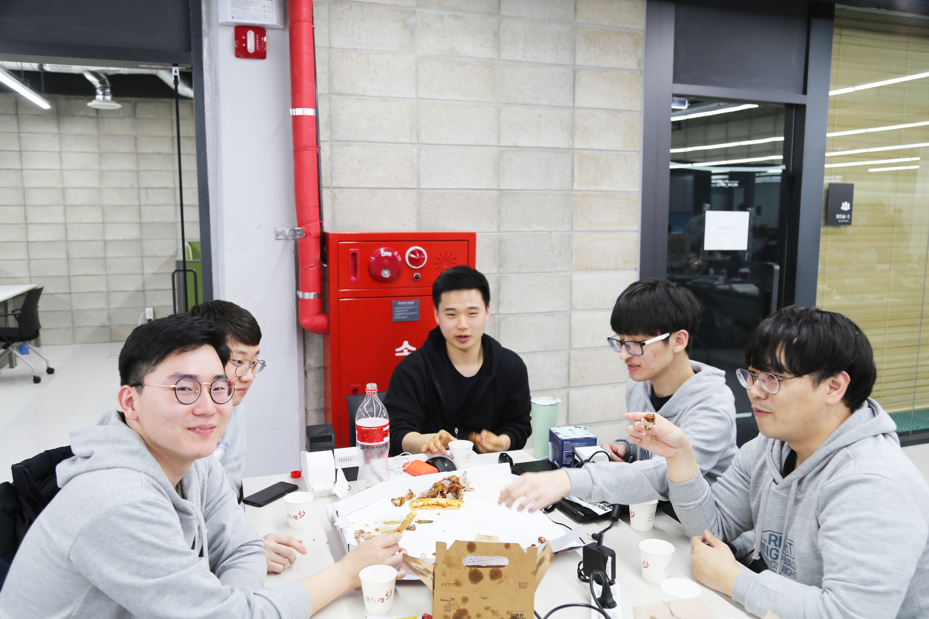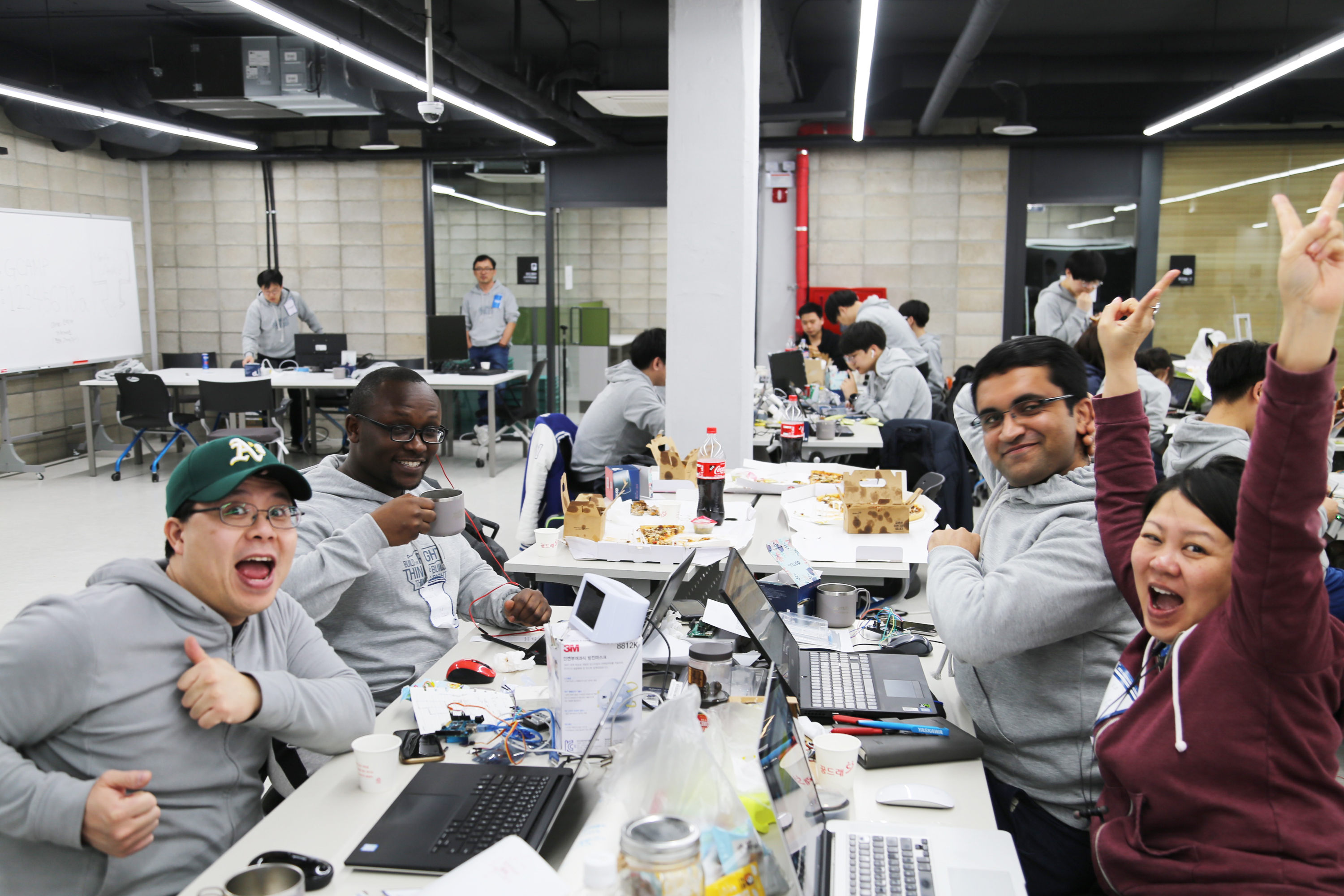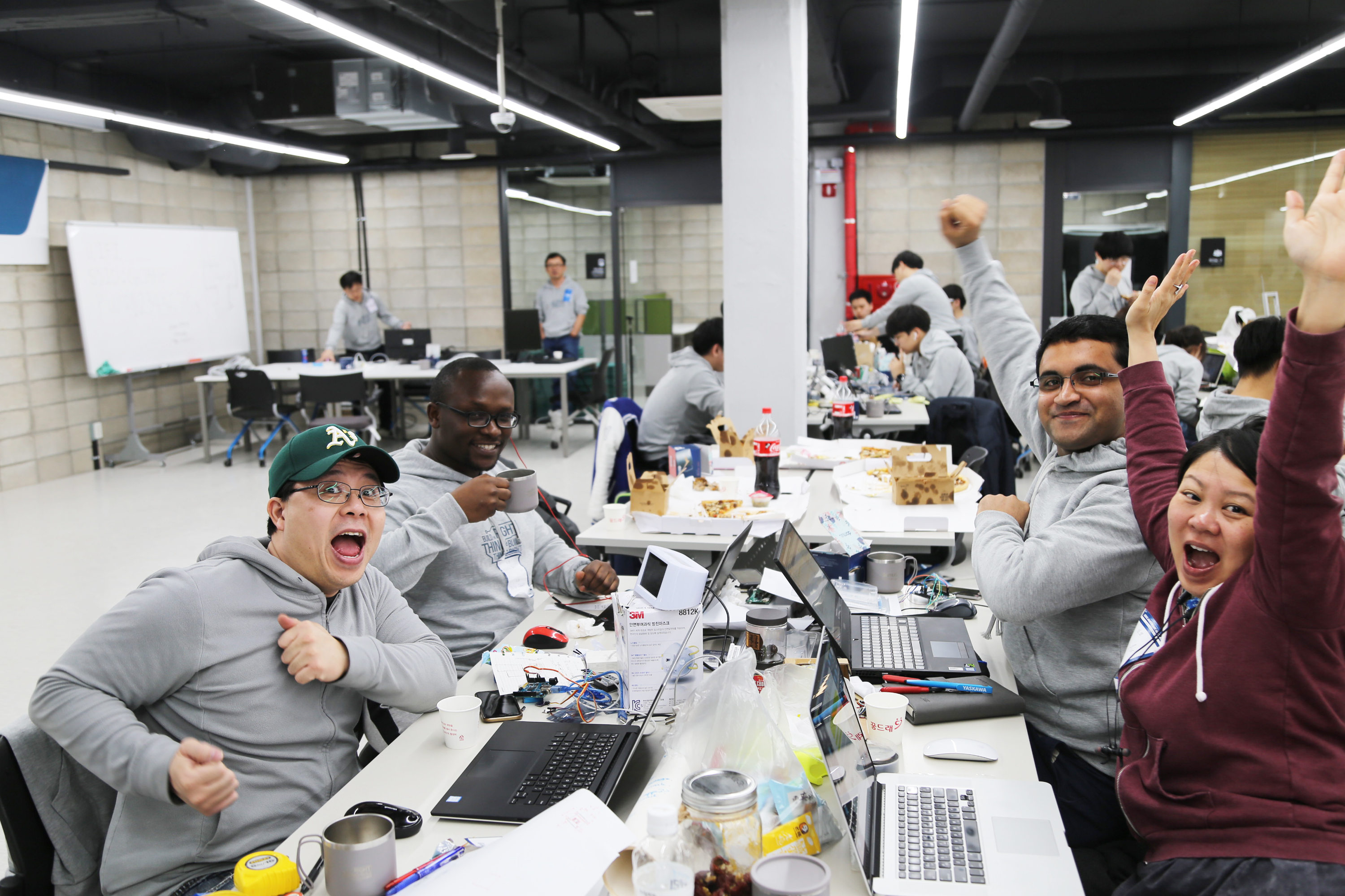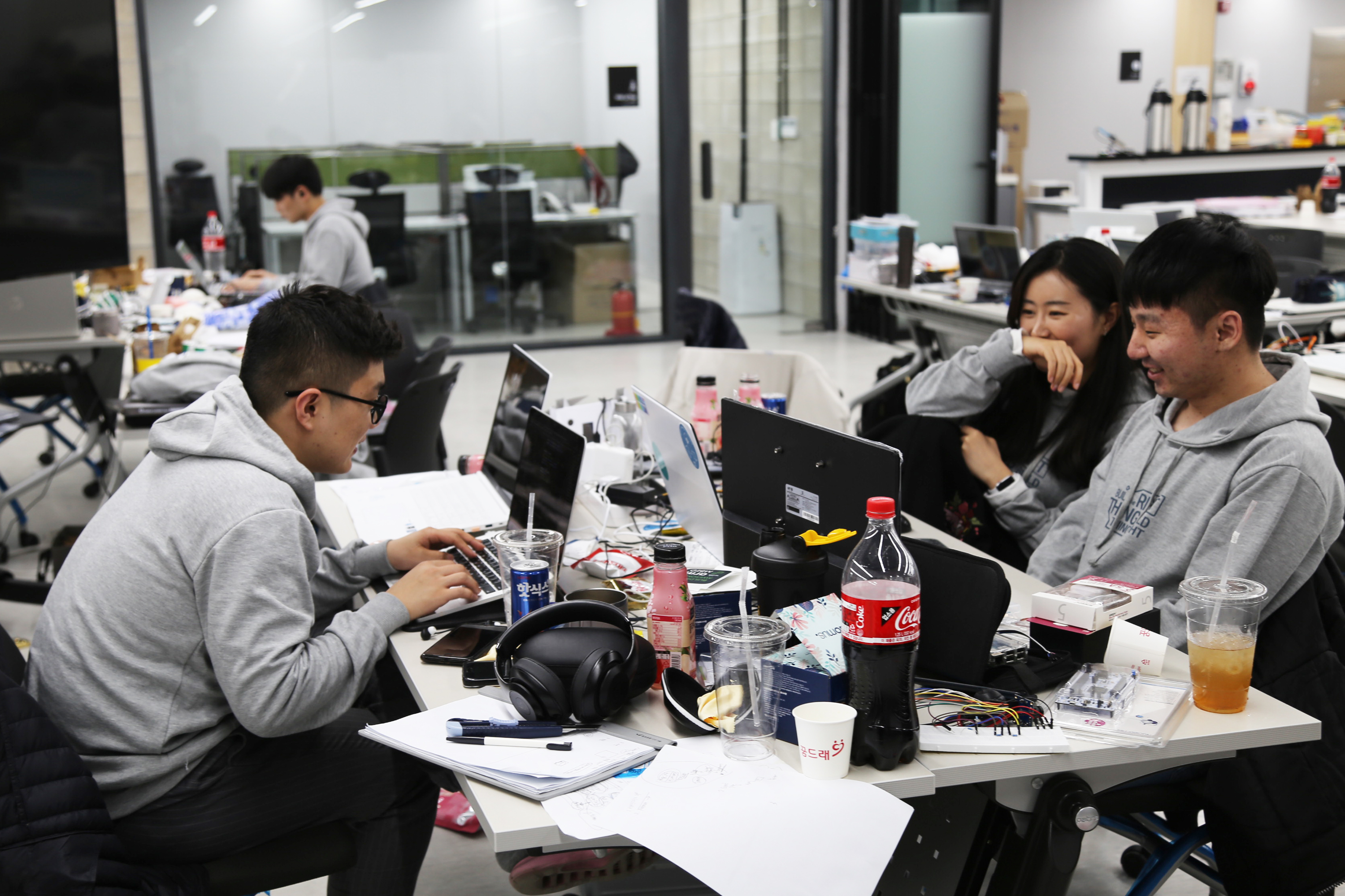 서울하드웨어 해커톤에서 개발하고 있는 장면입니다. 개발을 좋아하는 사람들의 놀이터이고 싶습니다.