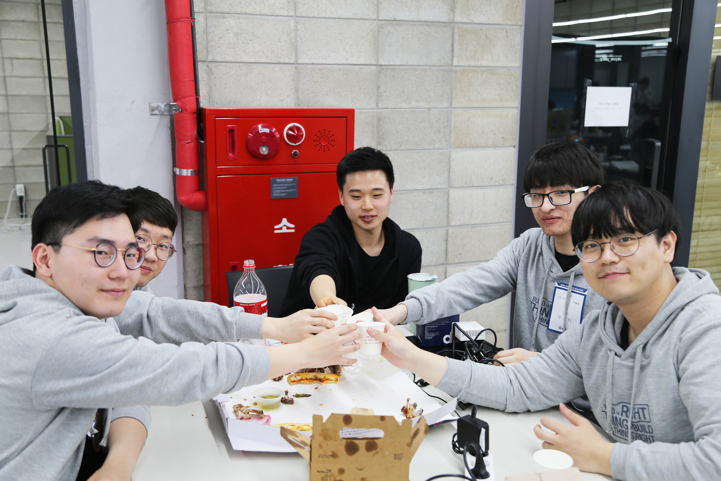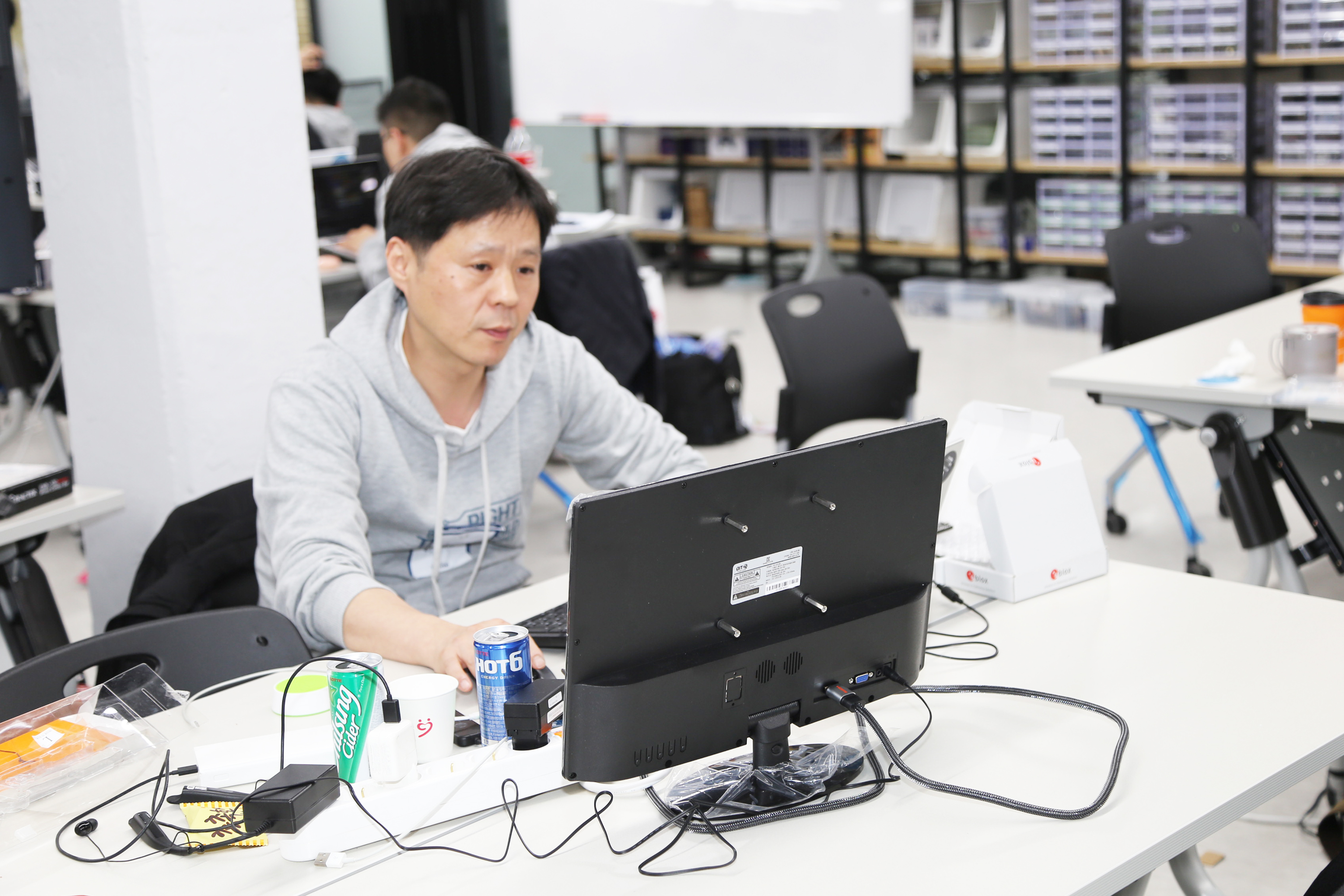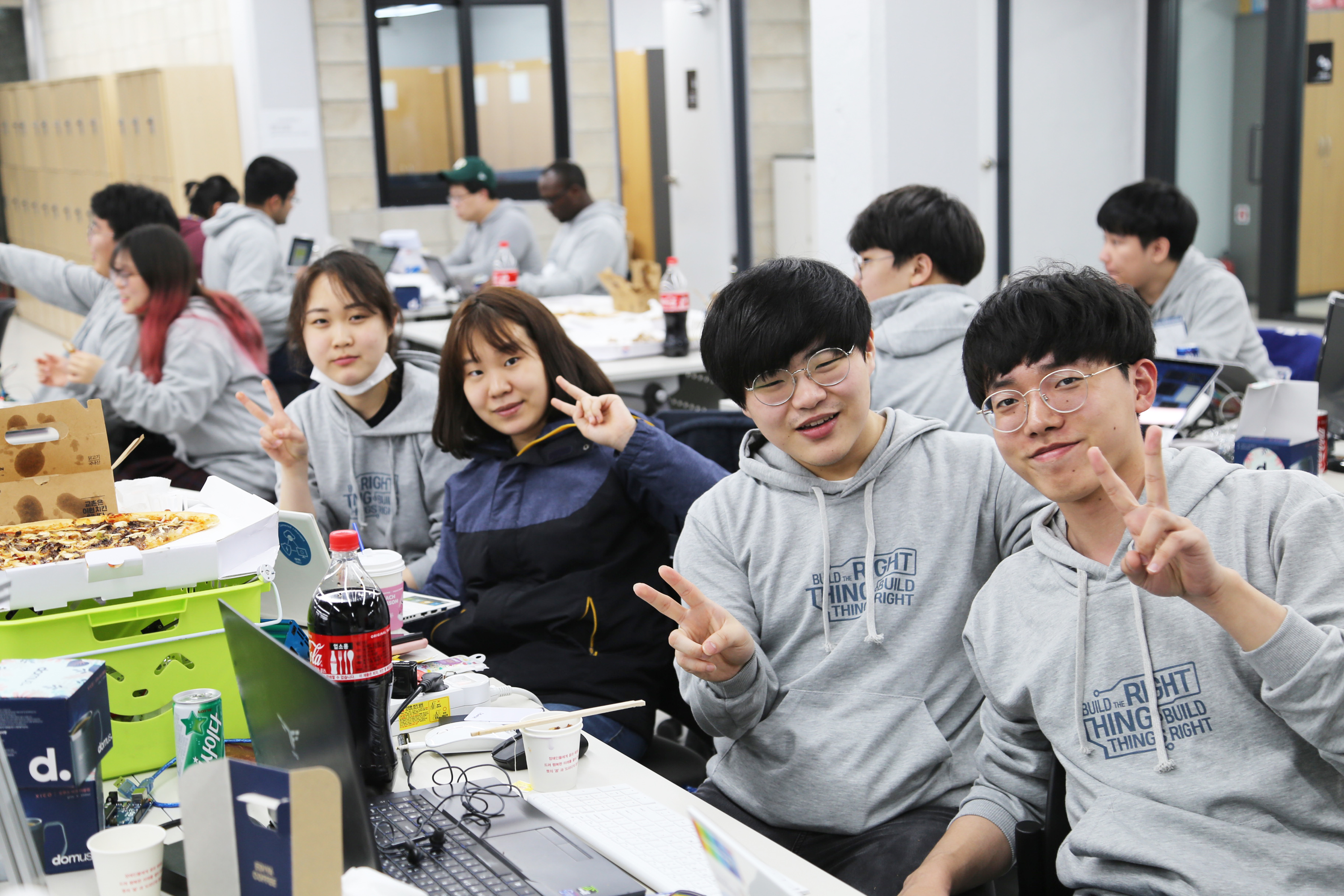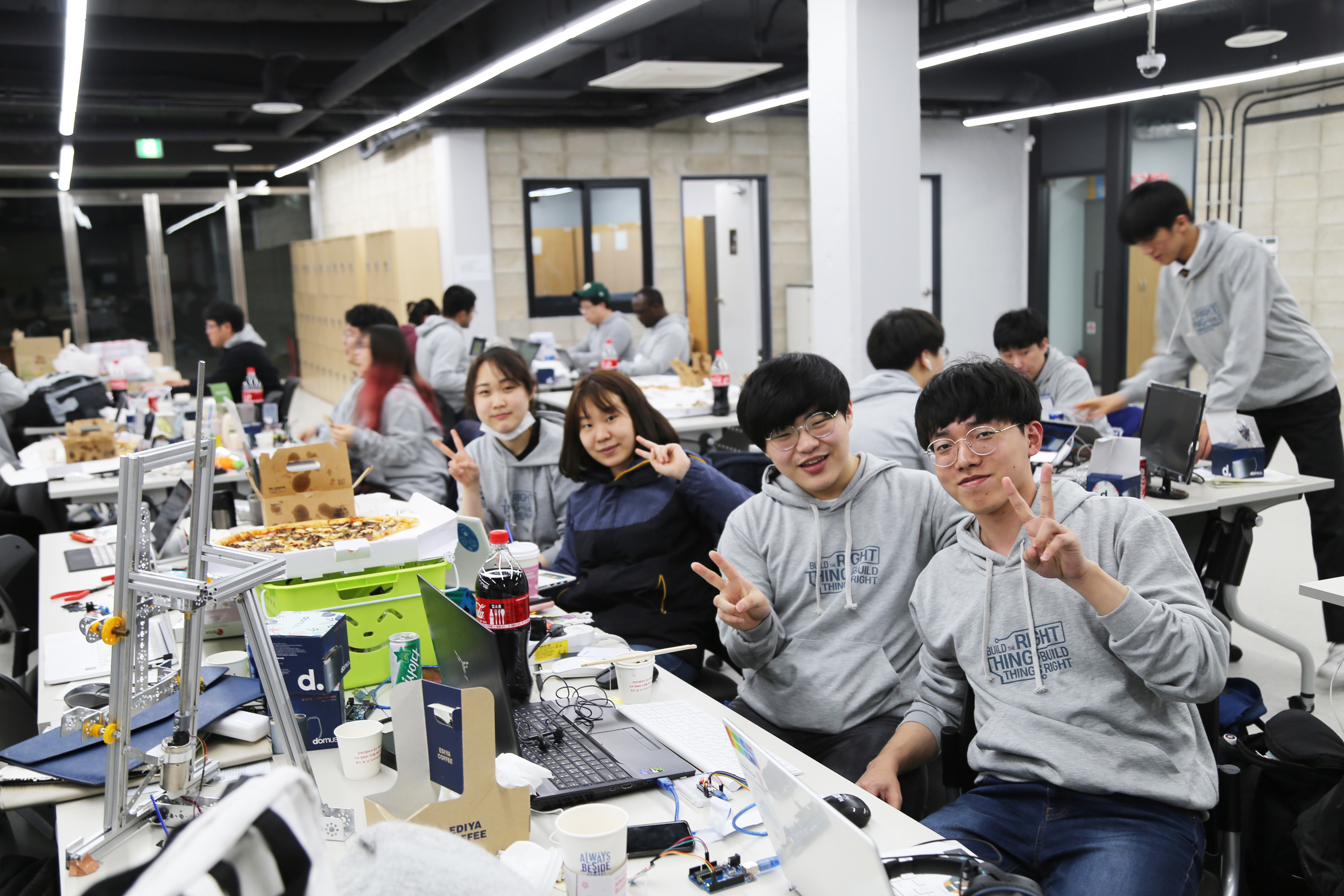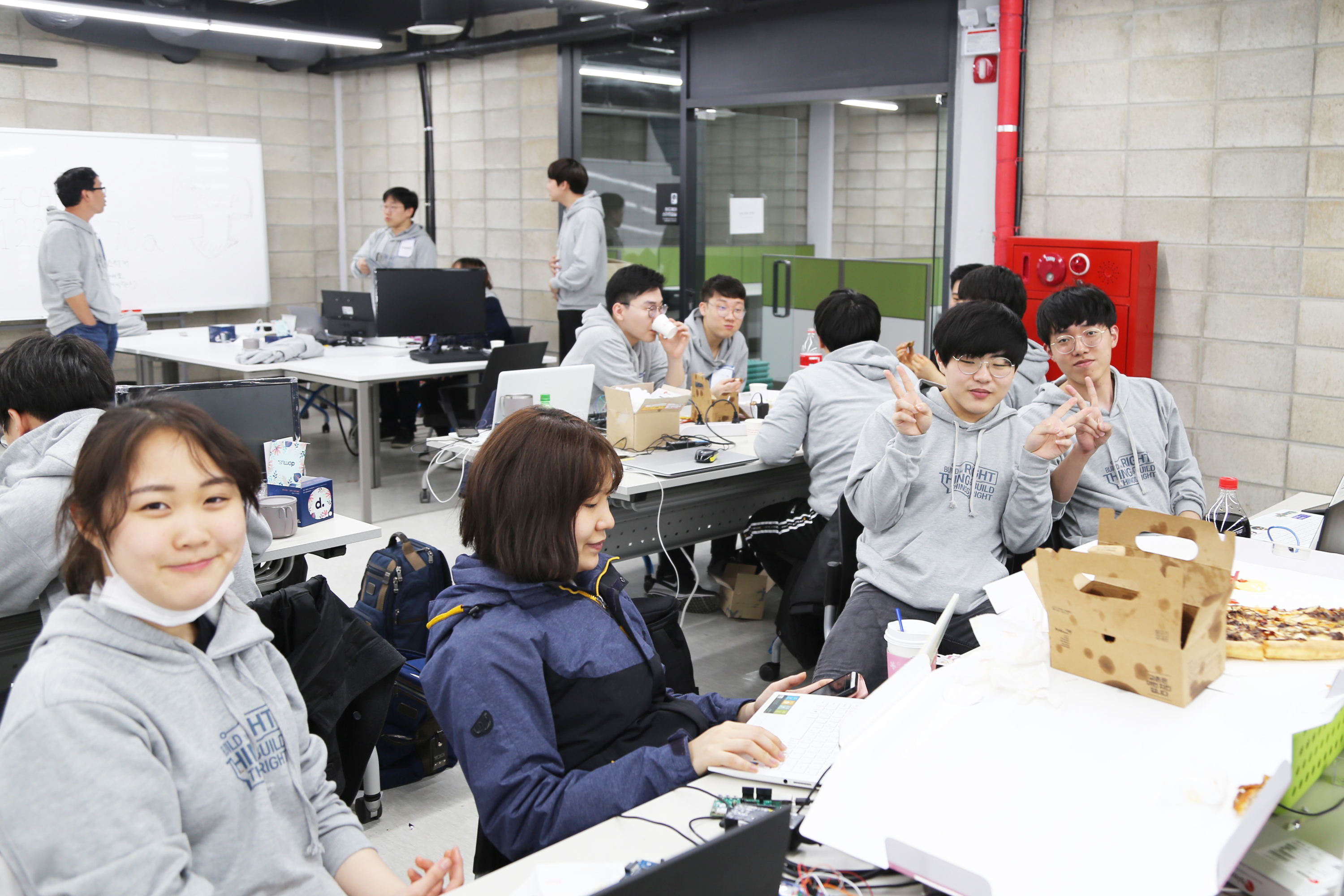 서울하드웨어 해커톤에서 개발하고 있는 장면입니다. 개발을 좋아하는 사람들의 놀이터이고 싶습니다.