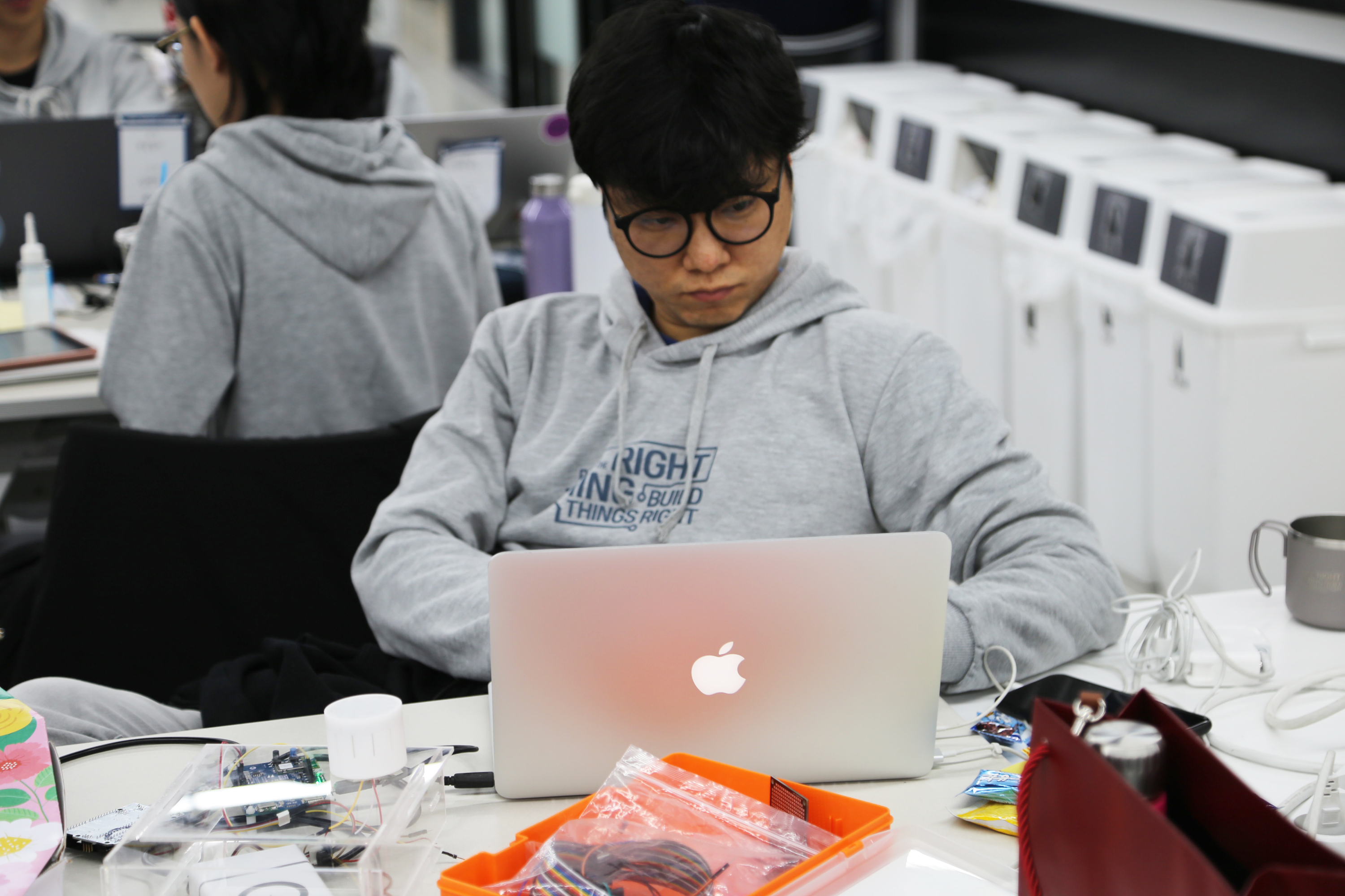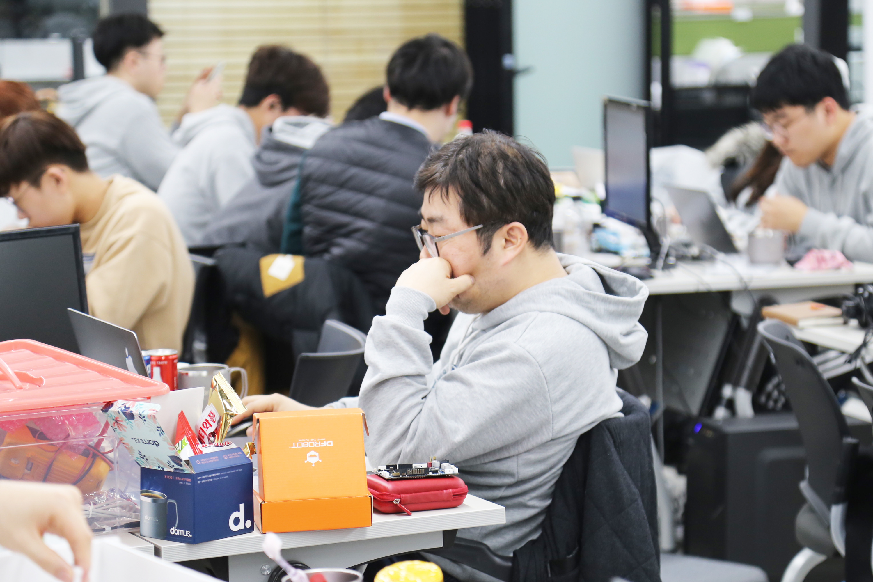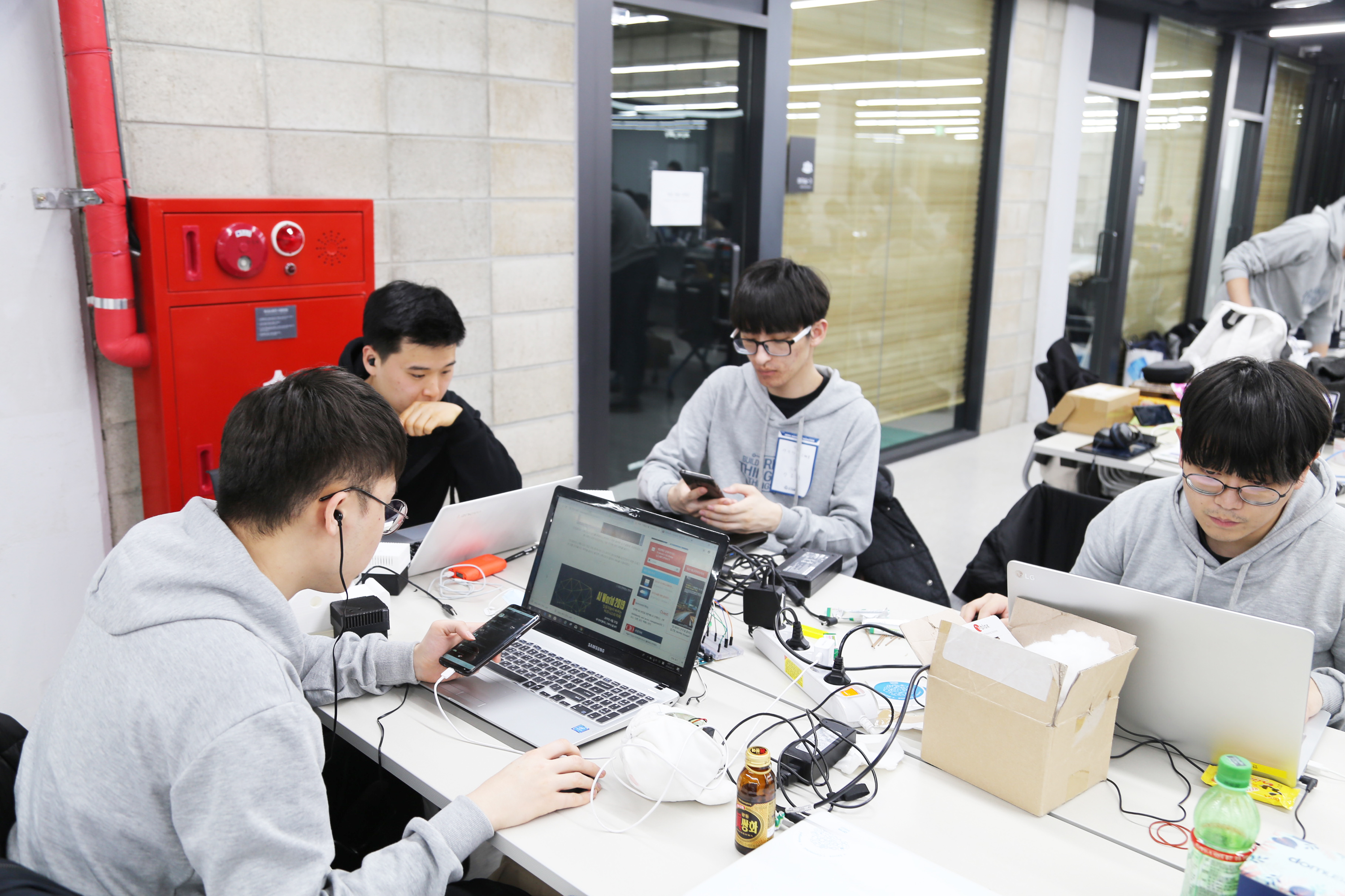 서울하드웨어 해커톤에서 개발하고 있는 장면입니다. 서울 하드웨어 해커톤에서는 개발이외의 프로그램이 없습니다. 개발을 좋아하는 사람들의 놀이터이고 싶습니다.