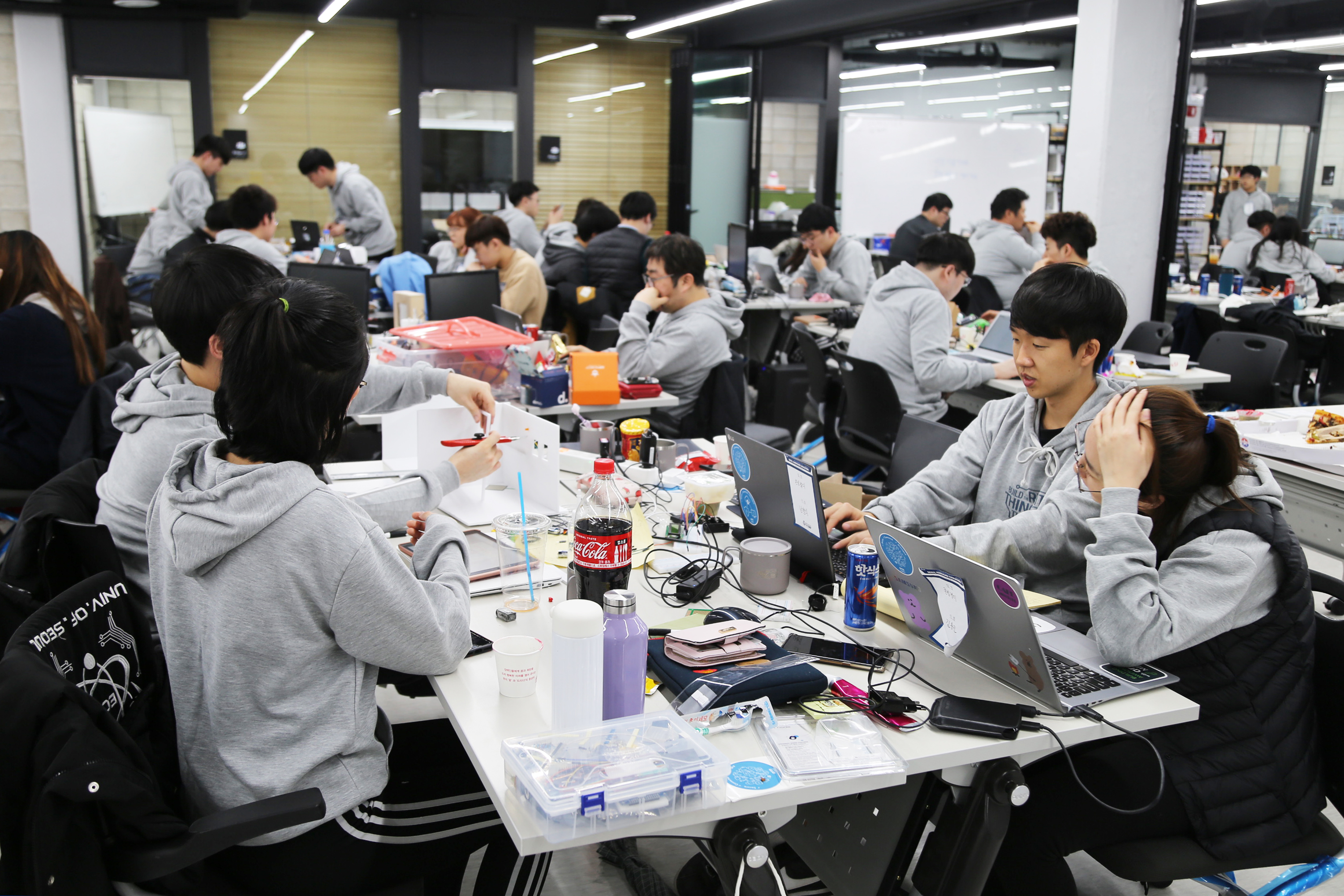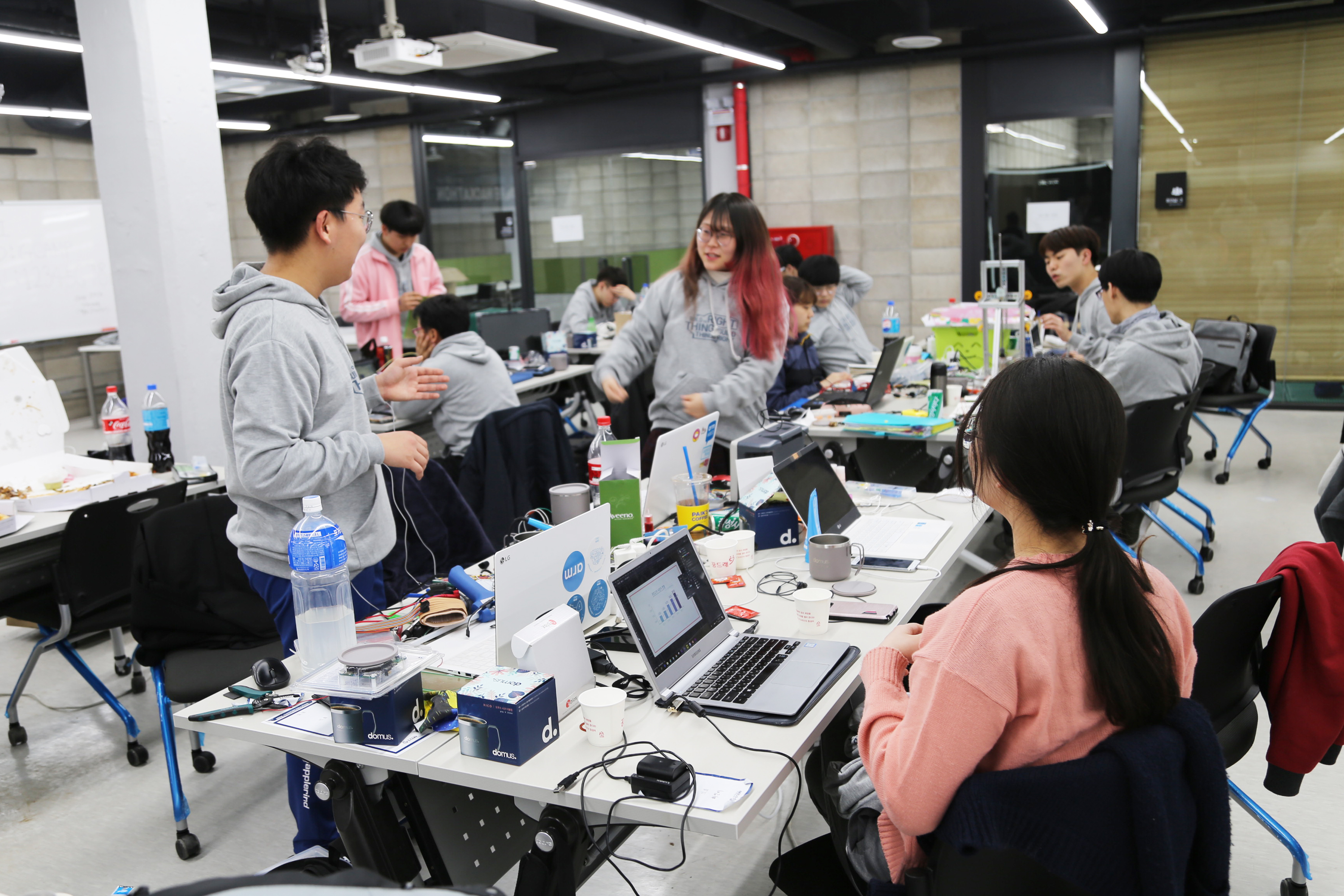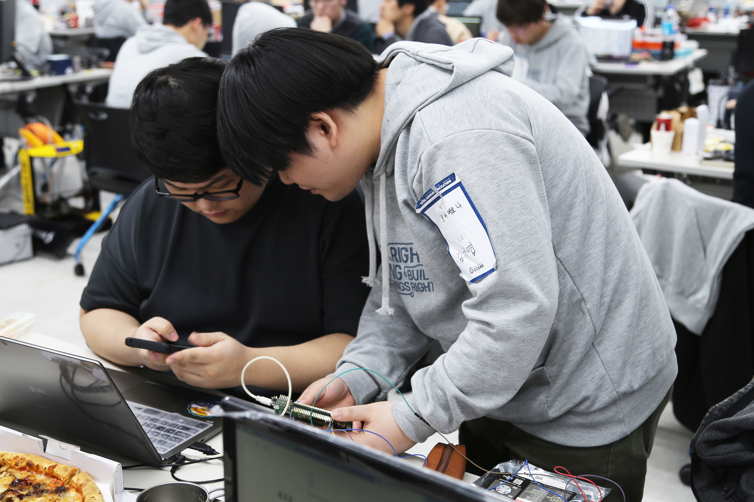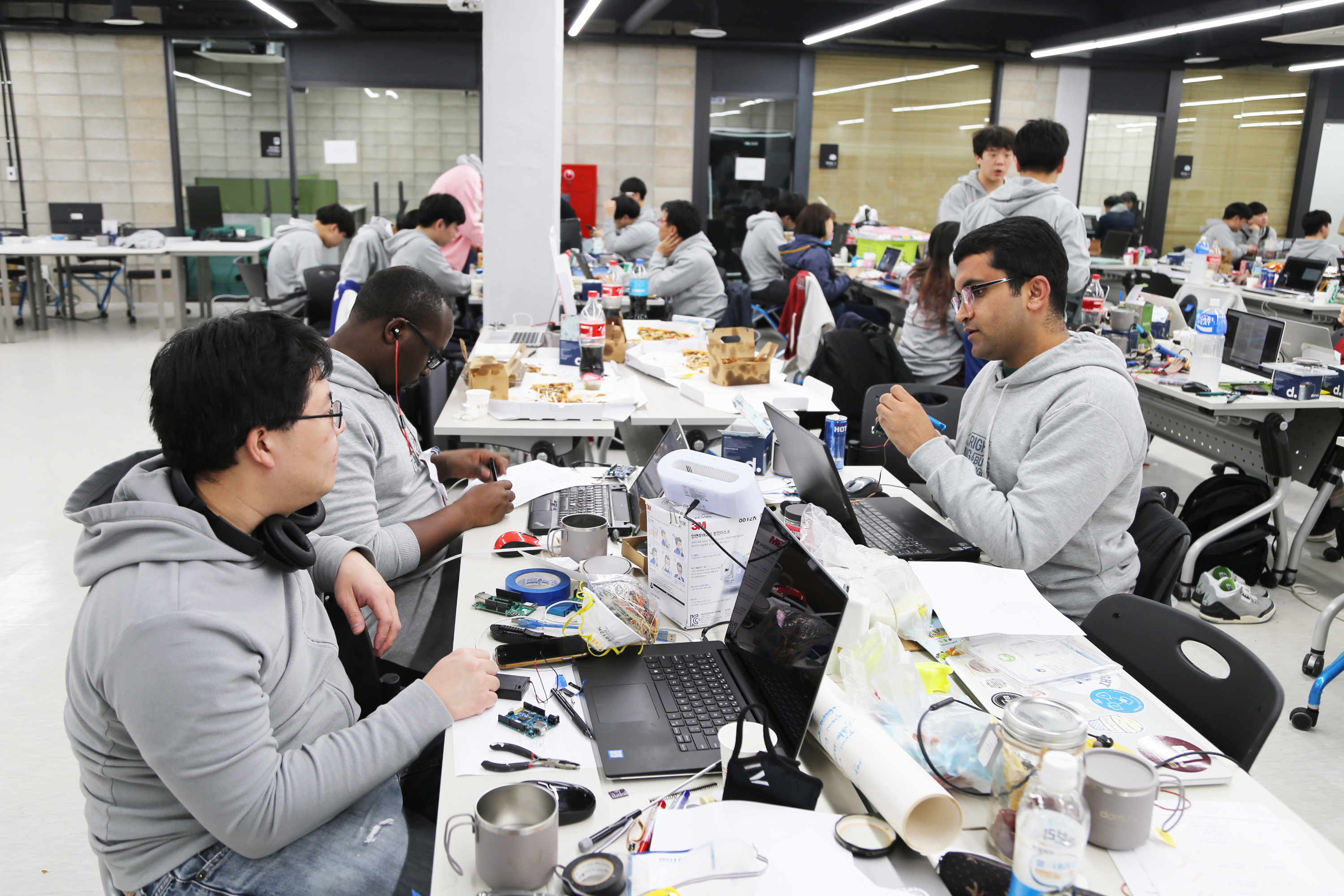 서울하드웨어 해커톤에서 개발하고 있는 장면입니다. 서울 하드웨어 해커톤에서는 개발이외의 프로그램이 없습니다. 개발을 좋아하는 사람들의 놀이터이고 싶습니다.