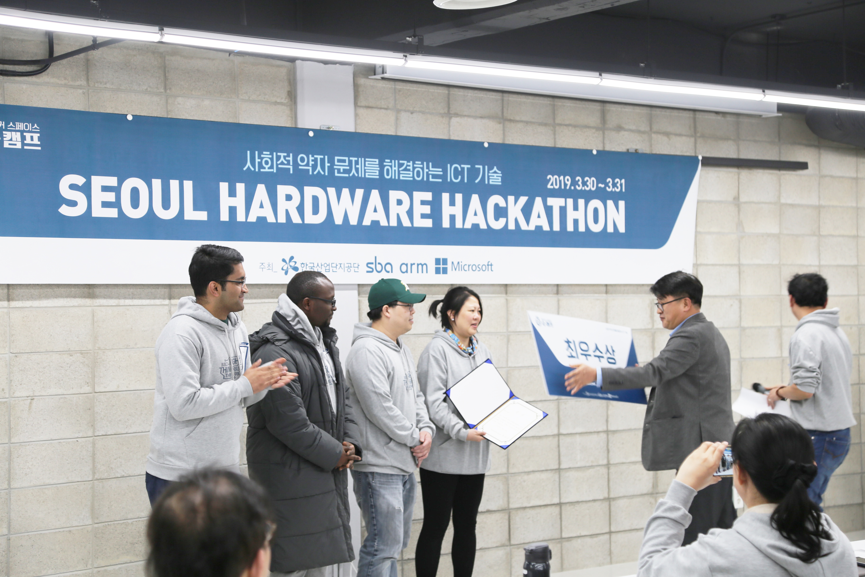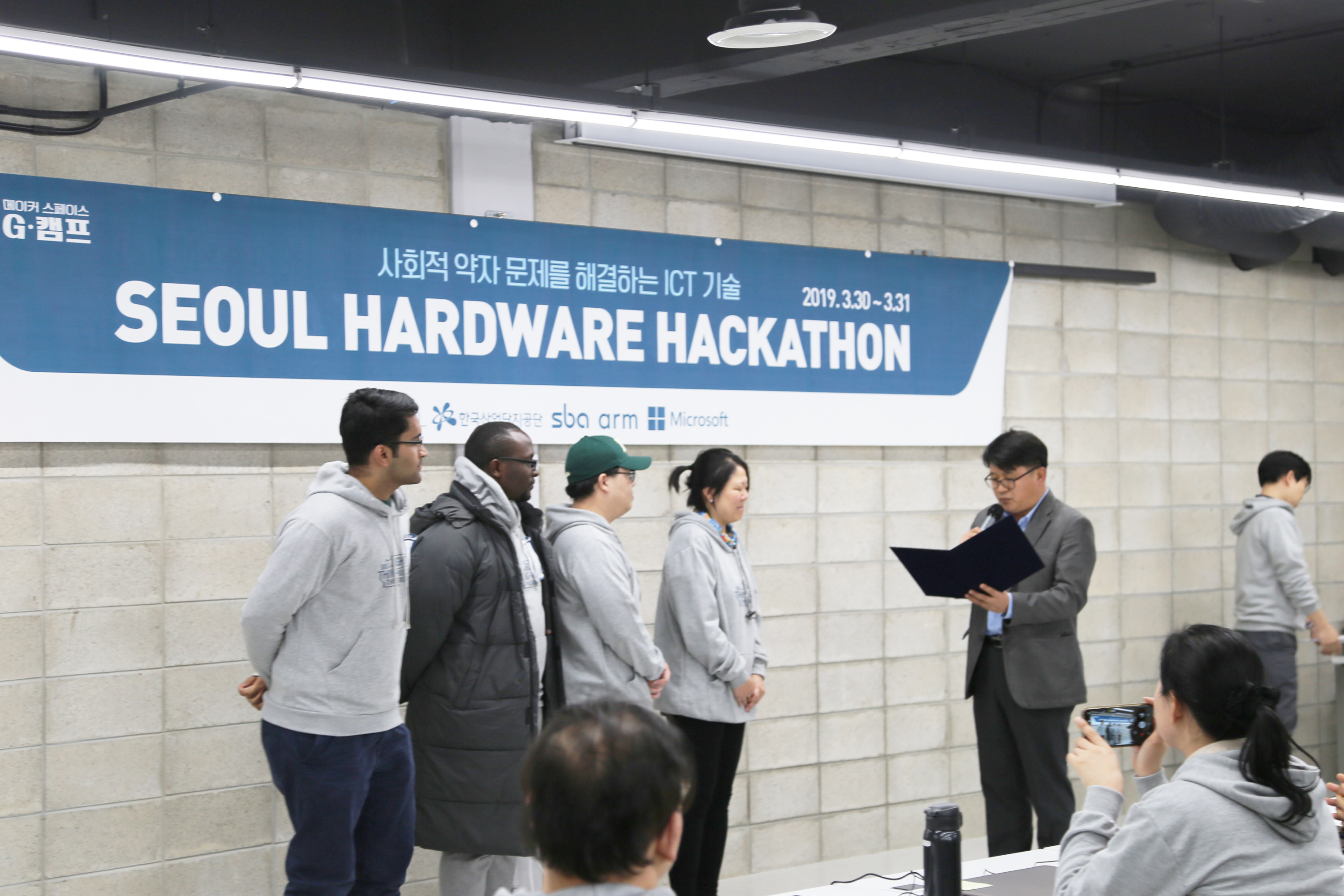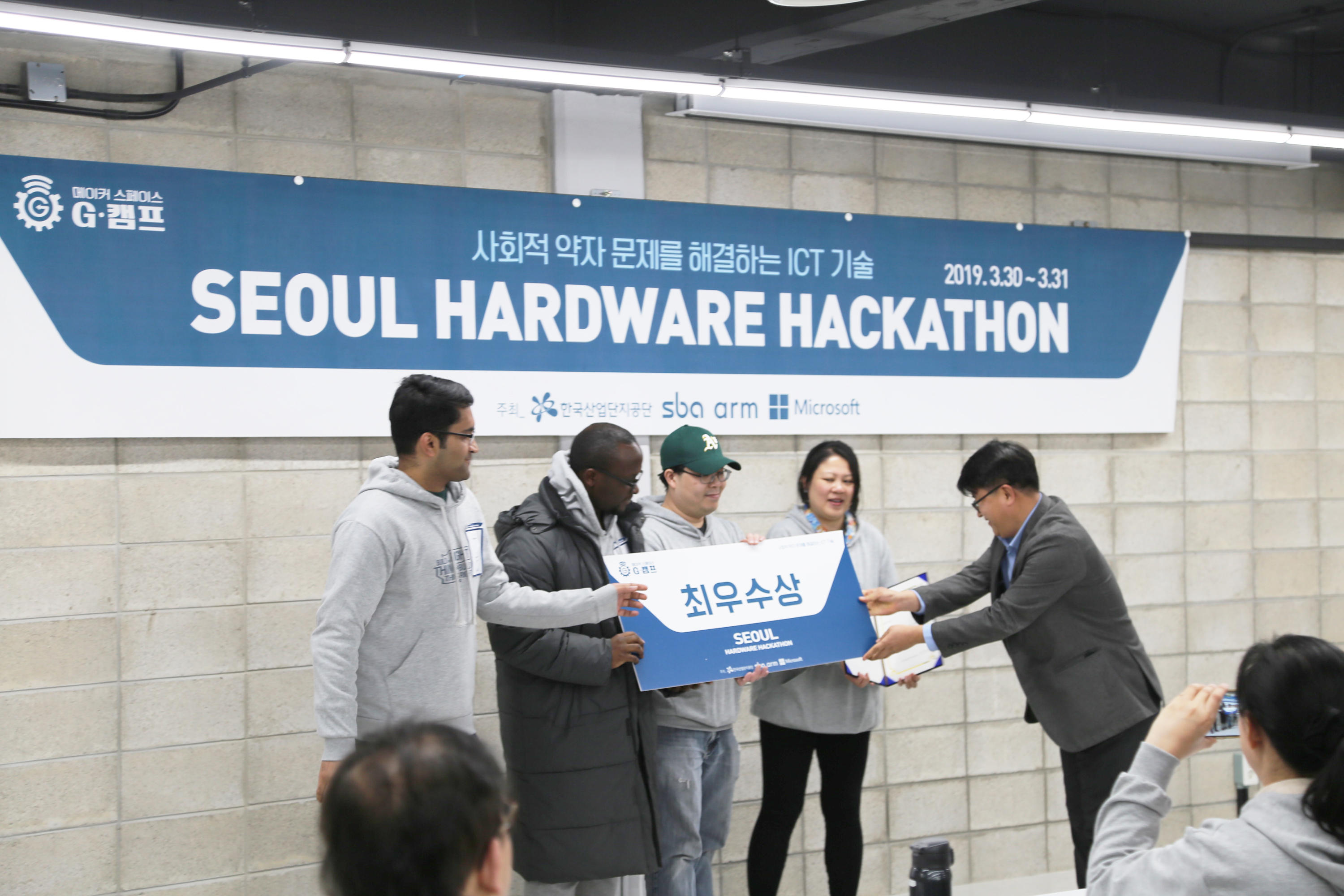 서울하드웨어 해커톤 시상 장면입니다. 축하드립니다.