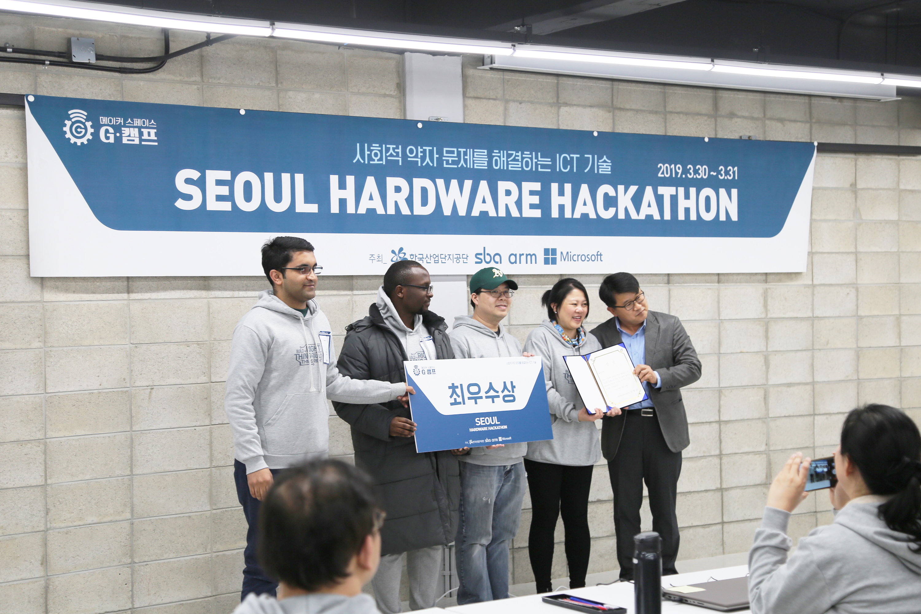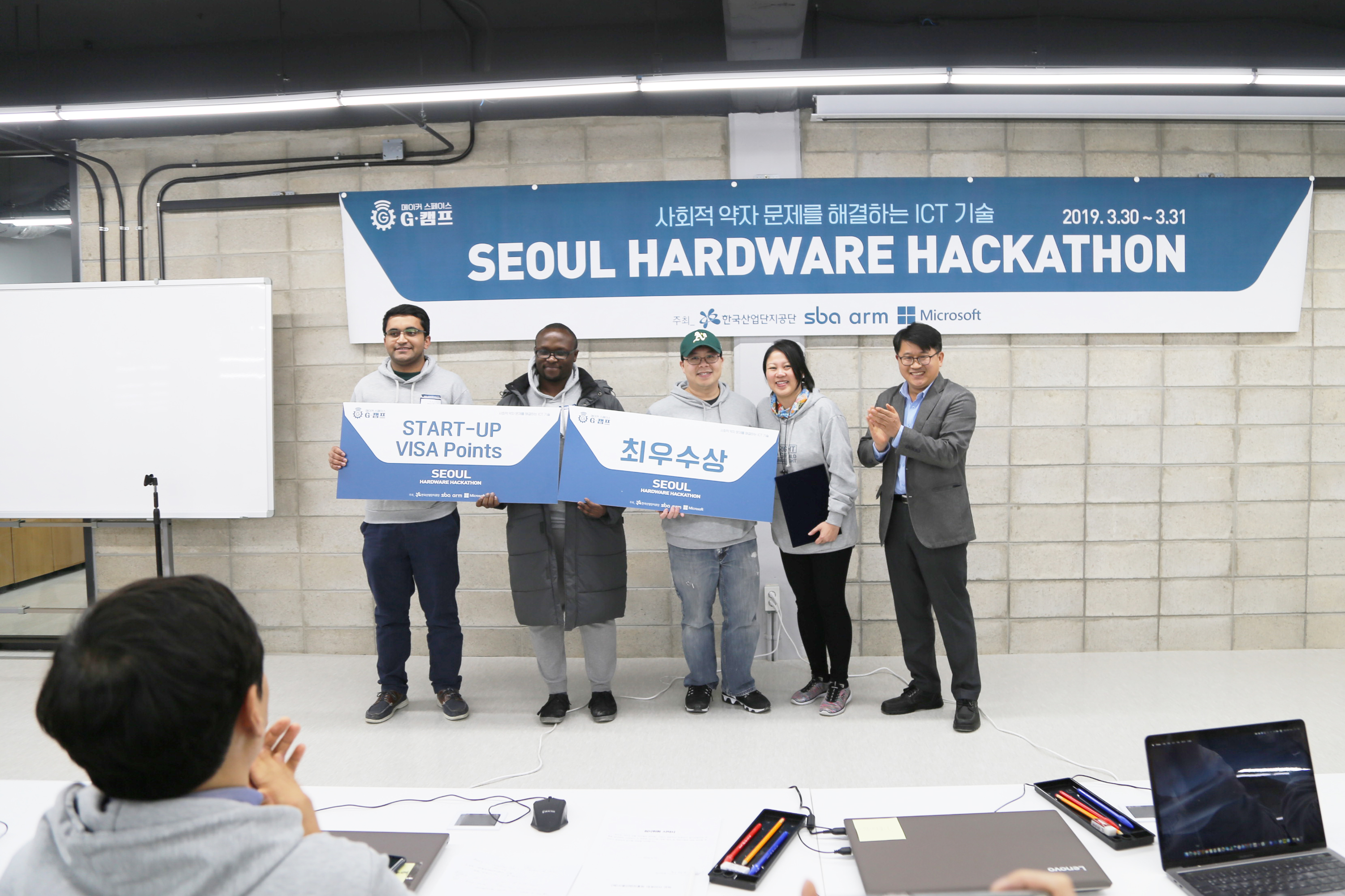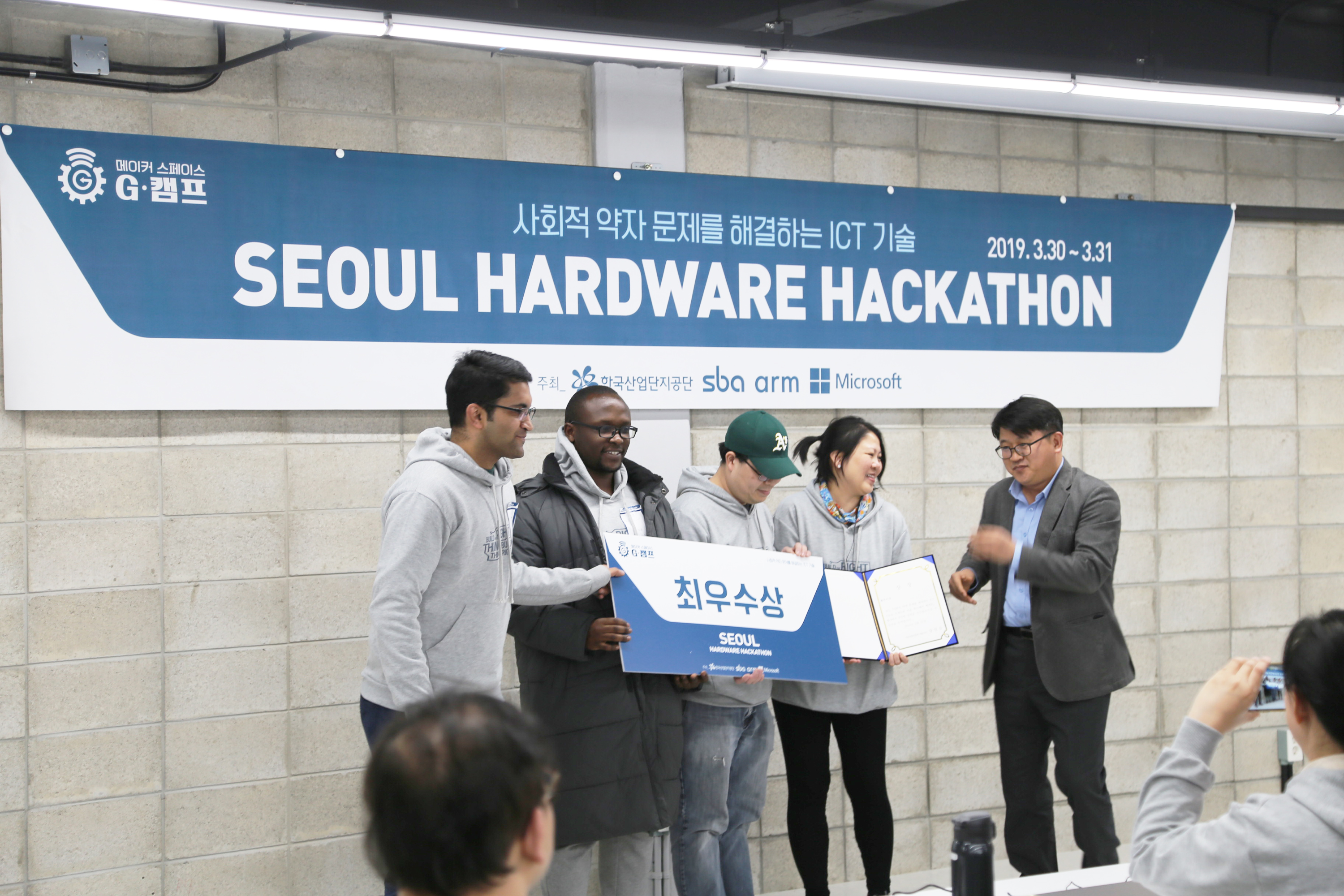 서울하드웨어 해커톤 시상 장면입니다. 축하드립니다.