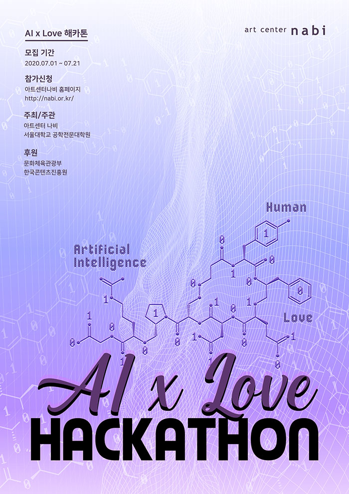 올해 해카톤의 주제는 “AI x Love”로 코로나 19로 인해 사랑하는 사람들과 소중한 이들을 위해 사회적·물리적 거리를 두어야 하는 상황 속에서 오는 ‘관계’ 변화에 주목합니다. 사람 사이를 잇는 매개체이자 새로운 커뮤니케이션 그 이상 역할로의 인공지능의 가능성에 대해 함께 고민하고 그 방향을 제시해보는 시간을 가지려 합니다. 문화·예술 및 다양한 분야에서 인공지능 기술을 직접 응용하고자 하는 열정과 재능있는 창작자 여러분의 많은 관심과 도전 바랍니다.